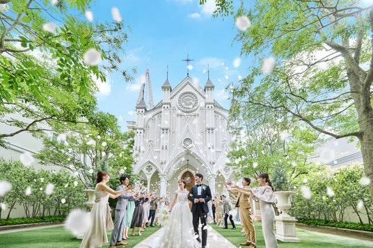 JR京都駅から車で15分、歴史と風情、四季折々の自然が彩る鴨川沿いの広大なウエディングステージ。欧州の街並みを思わせる独立型大聖堂と3つの貸切邸宅で憧れの一日が叶います。