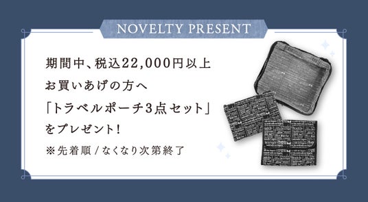 ■税込22,000円以上お買い上げのお客様へ、「トラベルポーチ3点セット」をプレゼント