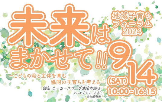 ワーカーズコープ連合会とワーカーズコープ・センター事業団は、「地域子育ちフォーラム2024」を、会場とオンラインを結ぶハイブリッド形式で開催いたします。日頃から子育ち支援にかかわる職員・関係者、子どもの育ちや子どもに関する諸問題にご関心のある地域住民の方など、どなたでもご参加いただけます。多くの皆様の参加をお待ちしております。