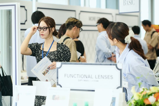 2日間の開催期間で、総勢400名を超えるメディア関係者やインフルエンサーが参加し、この日初めて披露された新商品を試着したり、バーチャルフィッティングやレンズの機能体験をするなど、展示会を楽しむ様子が見られました。「EYE LOVE TRAD」をテーマに開催された本展示会の会場は、街並みのような装飾が二次元で表現され、フォトスポットにはその世界観に入り込み写真撮影をするインフルエンサーで盛り上がりを見せました。