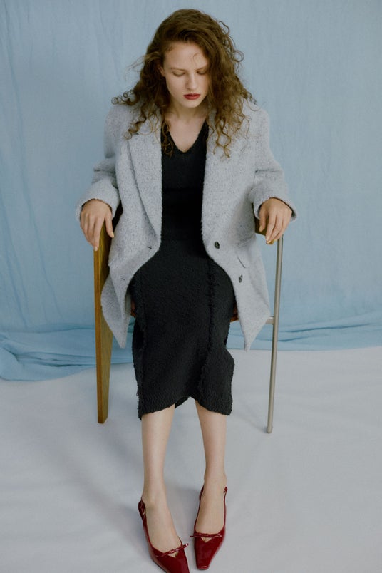 Jacket_¥41,800,Dress_¥26,400,Shoes_¥18,700