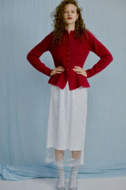 Cardigan_¥23,100,Skirt_¥18,700,Socks_¥4,400,Shoes_¥18,700