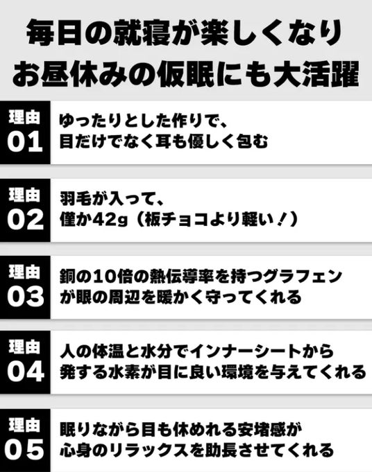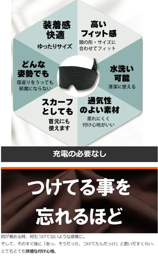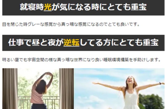 装着時の圧迫感の軽減を追求した、軽くてゆったりとして「ふわっ」という感じのアイマスク登場!