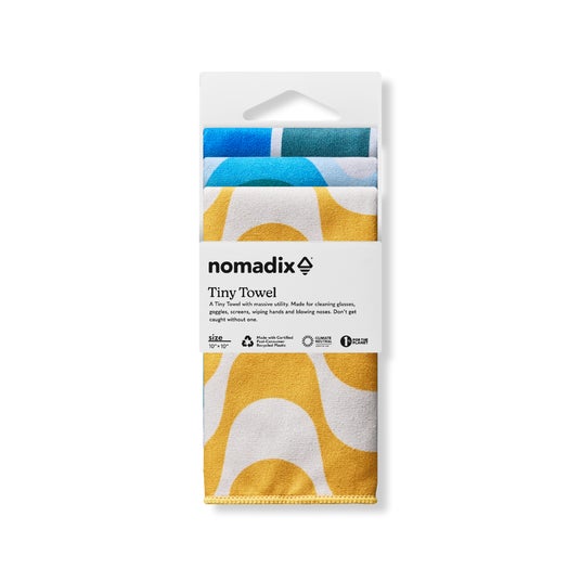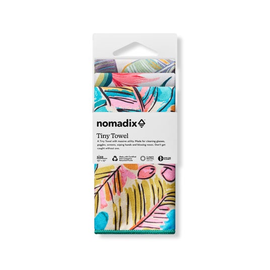 Tiny Towel(タイニータオル)は、コンパクトさと吸水力を備え、Nomadixのデザイン性と機能性をより気軽に楽しんでいただくために開発されました。小さく折りたたむことができ、ハンカチやクリーニングクロスとして、マルチに使用できます。