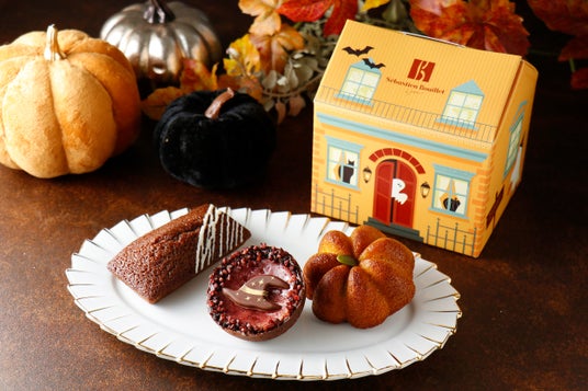 ホワイトチョコのデコレーションでハロウィン仕様になった”フィナンシェ ショコラ”、紫芋マドレーヌを入れた”タルトレット 紫芋”、かぼちゃ尽くしの”ケーク ポティロン”の3種をお楽しみいただけます。
