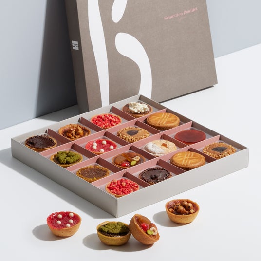 人気のタルトレットに加え、フィナンシェやマドレーヌ、クロッカンやダコワーズなど、バリエーション豊かな焼き菓子の詰め合わせです。