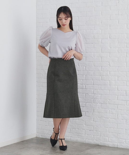 自然に広がる控えめなマーメイドシルエットが女性らしいデザインです。オケージョンやオフィスウェアにも重宝する一枚です。