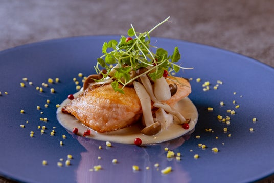 秋鮭とキノコのグリルを、クリームチーズと白味噌でマイルドな味わいに仕立てた腐乳ソースでお召し上がりいただくお魚料理や、まるごと鮑を使用した炒飯を燦宮独自の解釈でオイスターソースが香るリゾット風に仕上げる一皿、無花果や納芋のモンブラン、リンゴ春巻きなど、随所に季節の食材を取り入れた季節替りのおすすめランチコースです。