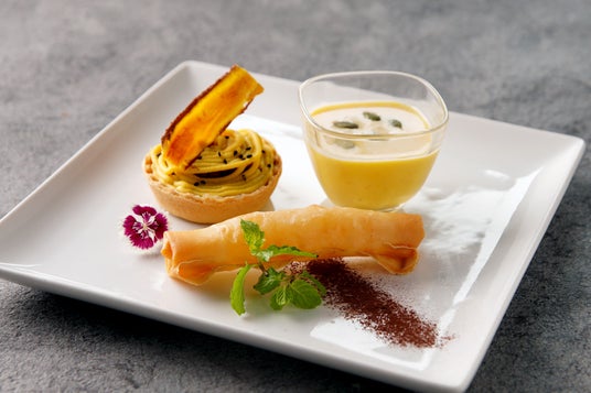 安納芋のモンブラン、リンゴ春巻き、南瓜のココナッツミルク