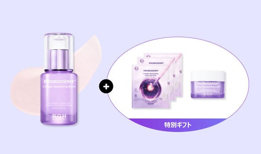 (左から)プロバイオダーム(TM)コラーゲンリモデリングセラム 30ml、プロバイオダーム(TM)コラーゲンリモデリングセラムゲルマスク 3枚(ギフト)、プロバイオダーム(TM)コラーゲンリモデリングセラム 20ml(ギフト)