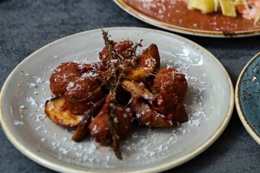 ~タイムとグラナパダーノチーズたっぷりの仔羊のミートボールと旬のポルチーニ茸、熟成じゃが芋のトマト煮込み~
