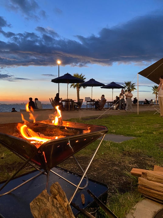 アウトドアブランドならではの日本各地でキャンプをして見つけ出した滋味深い食材と焚火台をはじめ、料理をおいしくする炎への徹底したこだわりが生み出すおいしさを、大阪湾を望みながらご堪能いただけます。