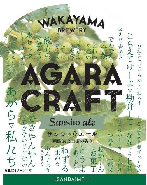 「AGARA CRAFT」期間限定ビール。山椒収穫量日本一を誇る和歌山県清水のブドウ山椒をふんだんに使用しました。想像を超える、爽やかで爽快な香りをお楽しみください。