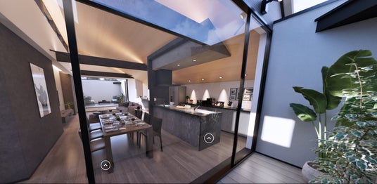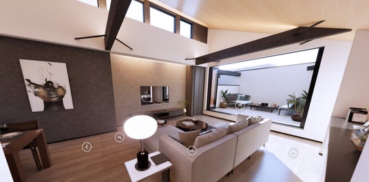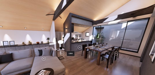 AR操作によって、物件内部を歩いているかのようにバーチャル内見が可能です。採光、空間感覚など実物と変わらないレベルで体感することが可能です。