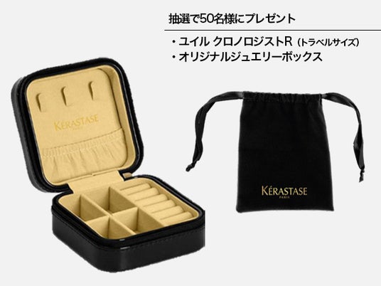 8月29日(木)より、ケラスターゼ公式Xアカウントでユイル クロノロジスト Rのトラベルサイズとオリジナルジュエリーボックスが50名様に当たるフォロー&リポストキャンペーンを実施。