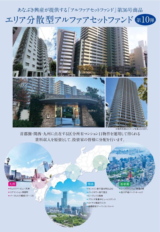 『エリア分散型アルファアセットファンド第10弾』は、穴吹興産が全国で保有する物件の中から首都圏・関西・九州に点在する優良物件11物件が対象。エリアを分散することで局地的な災害リスクなども抑えることができます。