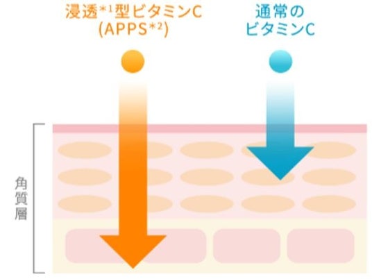 POINT 3:浸透型*¹ビタミンC(APPS*²)配合従来のビタミンCに比べ肌なじみの良い、浸透型*¹ビタミンC(ACCP*²)が角質層のすみずみまでしっかり浸透。肌をキュッと引き締め、キメの整ったハリ肌に導きます。