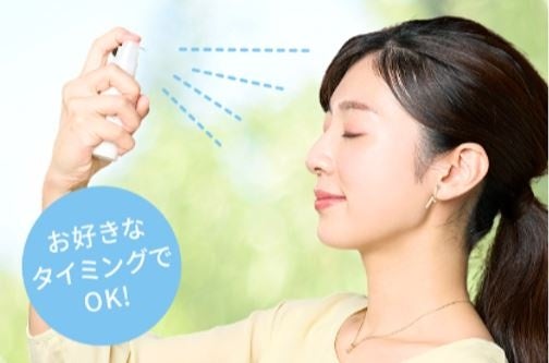 POINT 2 :メイクの上からOK!いつでもどこでもすばやくうるおい&リフレッシュ携帯しやすいミニボトルでお好きなタイミングでうるおいチャージできます。やさしい柑橘系の香りで気分もリフレッシュ
