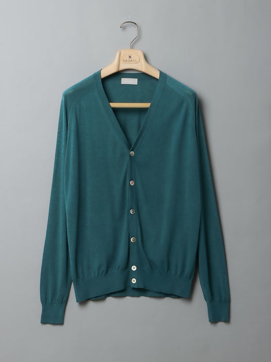 日本製の糸を使用し、キュプラとウールを掛け合わせた複合素材のVネックカーディガン。吸放湿性・吸湿発熱性・制電性に加えて、ご自宅の洗濯機で洗濯が可能なイージーケア性が特徴です。希少価値の高い18ゲージの目の細かさで編立てられ、しなやかな質感となっています。
