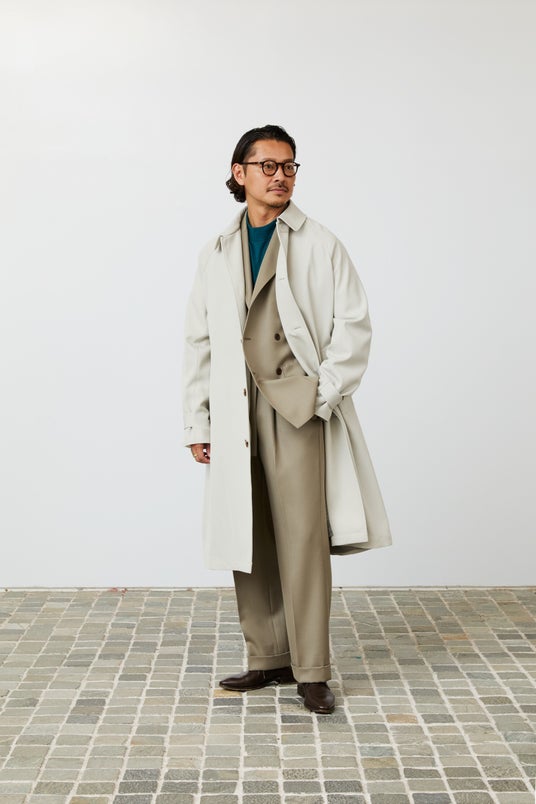 商品は、尾州地域(一宮市)、備中備後地域(倉敷市、福山市)、遠州地域(浜松市)、播州地域(西脇市)など、日本ならではの優れた職人が手掛けるこだわりの素材を厳選。セットアップスーツ、ジャケット、パンツ、シャツなど、存分に日本素材を使用しました。また秋冬コレクションでは、新たにコートが登場。英国生地のようなハリコシに優れた風合いのある「尾州産生地」を採用し、ロング丈でリラックス感のあるステンカラーコートやカシミヤをブレンドした軽くて暖かみのあるピーコートを用意しています。