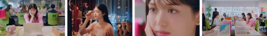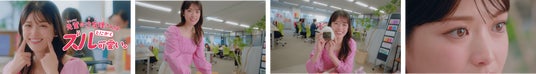今回の新CMは、会社の先輩役として天真爛漫な松村さんが登場します。目にごみが入ってしまい必死に取ろうとする様子や、仕事中ついつい居眠りして寝言を言ってしまうシーン、後輩のお弁当を見て一口ねだる場面で、男女ともにキュンとしてしまう松村さんの“ズル可愛い”仕草が描かれています。