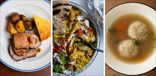 コーヒーローストポーク(ディナー)/チキンオーバーライス(フードトラック)/マッツァボールスープ(スープ)