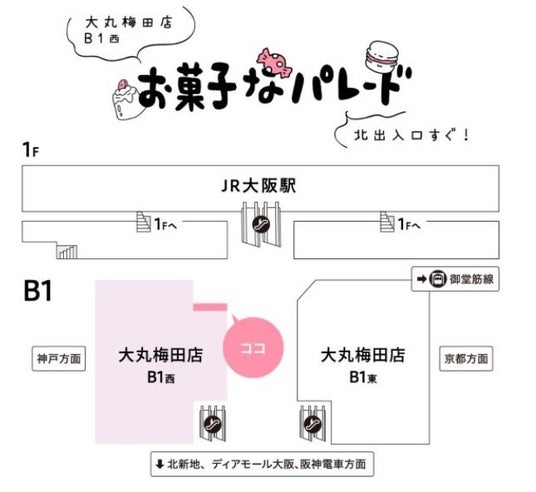 【場所】大丸梅田店 地1階西 出入口前 お菓子なパレード
