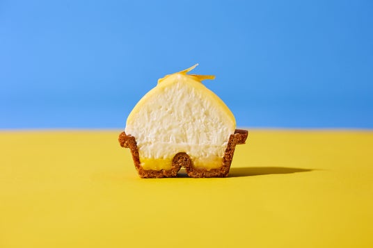 瀬戸内の太陽の光をたっぷり浴びたレモン果汁の爽やかな酸味と、生チーズムース・スフレの旨みと塩味の組み合わせ。ザクザククッキーの上にレモンカードを乗せ、生チーズスフレとレモン生チーズムースを絞り、レモンカードのグラサージュでコーティング。その上に自家製レモンピールをのせました。自社で運営する放牧牧場で搾れた牛乳や、極限まで放し飼いに近い環境を目指す鶏舎で平飼いで採れた卵など、環境に配慮した原材料を使用しています。