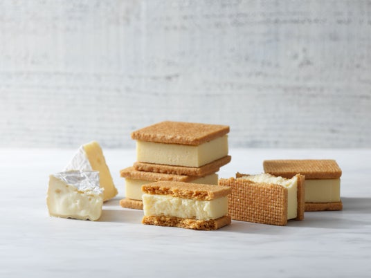 カマンベールチーズとエダムチーズにほんのりレモンをきかせて仕上げた「チーズケーキ ナウ カマンベール&エダム」、スモーキーな風味が魅力的なクラシックチーズサンドより「スモークチーズ&カマンベール」としっかりとしたチーズ感の「カラメル&ゴルゴンゾーラ」を詰め合わせました。