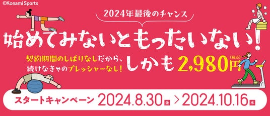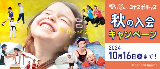 コナミスポーツ株式会社(以下、弊社)が運営するコナミスポーツクラブでは、2024年8月30日(金)から2024年10月16日(水)まで秋の入会キャンペーンを実施します。