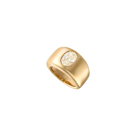 K18イエローゴールドをふんだんに使った、どっしりとしたリングはビジュードエムの中でも1番ゴージャスなアイテム。※ダイヤモンドのキャラット、カット、はオーダー。ダイヤモンドの鑑定書付きです。
