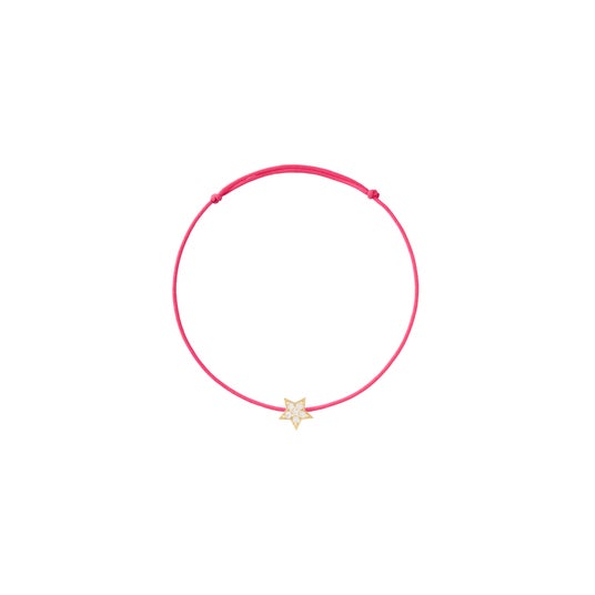 K18イエローゴールドで表現した星、月、ハートにダイヤモンドを散りばめました。肌身離さずつけていられるコードのブレスレット。カラーは全8色。