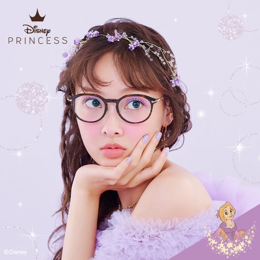 ラプンツェルの長く美しい髪と髪飾りをモチーフにしたテンプル(つる)が、上品で可愛らしい雰囲気を演出します。