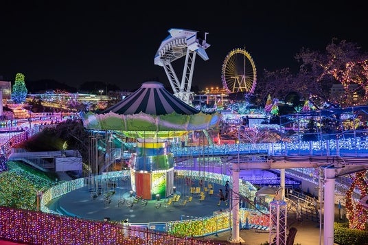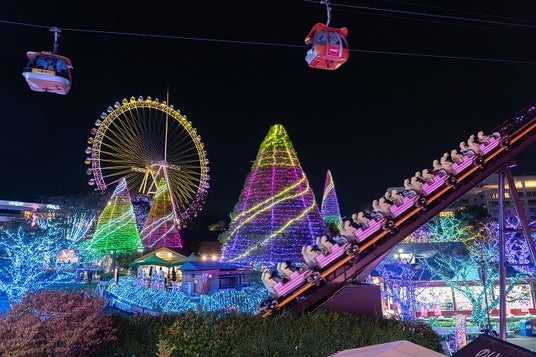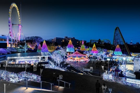 アトラクションに乗りながら眺めるイルミネーションは遊園地ならでは。観覧車やジェットコースターなどのアトラクションからは都心のパノラマ夜景もご覧いただけます。