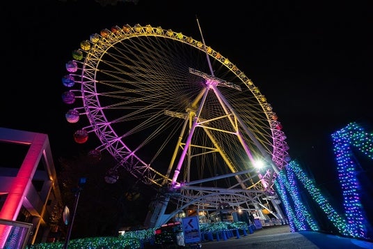 現在運行している「大観覧車」は、昨年に引き続き「LIGHT is LOVE」をテーマとして上半分は豊かさや高貴さを感じる金色、下半分はロマンスや優しさをイメージさせるピンク色で照らしあげます。
