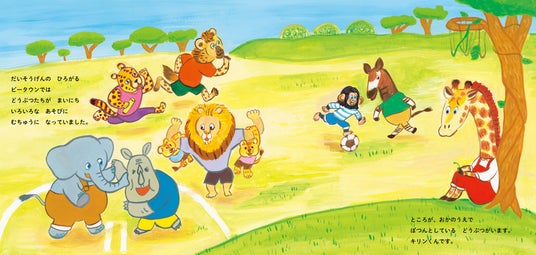 この作品は、自己肯定感の低いキリンが主人公です。運動が苦手で、友だちの輪に入れないキリン。そんなキリンがバスケットボールと出会い、変わっていきます。少しずつ自分のことを愛せるようになっていくキリン。この物語は、佐藤卓磨が、自身の幼少期を振り返りながら、つくられました。佐藤卓磨の子どもたちへの願いが込められた一冊です。