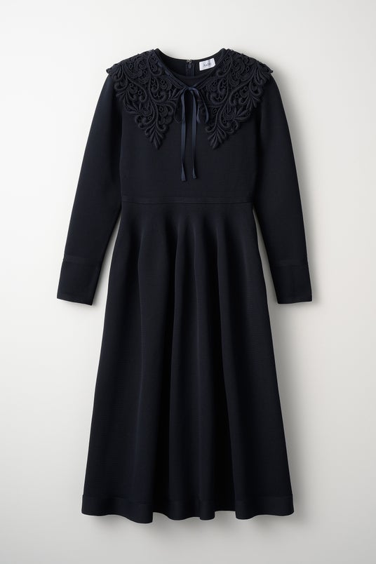 ニットワンピースChristina knit dress(Navy)¥38,500 / レース襟Christina lace collar(Navy)¥9,900