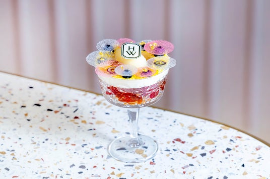 今回のアフタヌーンティーでは、ハリー・ウィンストンが誕生したニューヨークをテーマに、赤いリンゴの形をした「ニューヨーク・ミニアップル」などのニューヨークスイーツや、宝石のように煌めく「ブルーベリー スミレ タルトレット」などのジュエルスイーツ、HWロゴをあしらったスイーツほか、心躍るセイヴォリーメニューをラインナップ。ガラスのジュエリーボックスに丁寧に並べて、エレガントで繊細なアフタヌーンティーに仕上げました。また、ブロードウェイのキラキラと輝くライトを表現したジュエリーがイメージのパフェ「シティ・ライト」もご用意しております。