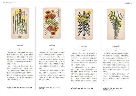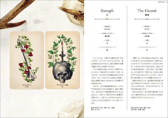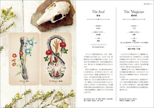 78枚のカードにはオカルティックな解剖学的と繊細な植物イラスト。そして、カードには英語と日本語の記載があり、意味もしっかり解説しているので、タロット初心者も安心してチャレンジすることができます。 神秘的なイラストの豪華な箱入りセットでギフトにも最適です。