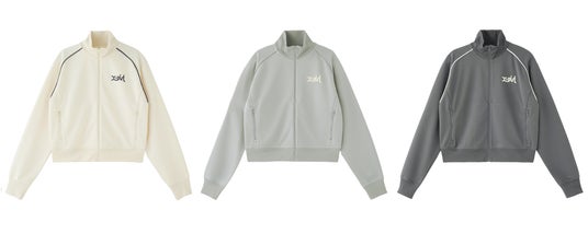 X-girl ロゴを総柄ジャガードで表現した X-girl SPORTSを象徴するデザイン。UVカット、吸汗、速乾性を兼ね備えたジャストフィットなシルエットのウォームアップウェアです。