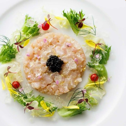 鮮魚のタルタル シャンパーニュのジュレライム風味のサラダ 宮崎キャビア添え