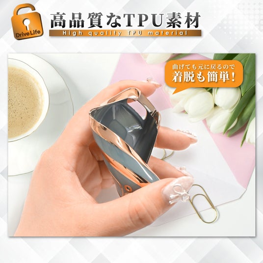 TPUは軽量かつ衝撃に強い素材で、持ち歩くことが多いスマートキーにぴったりです