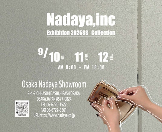 株式会社ナダヤ(本社:大阪府東大阪市、代表取締役:灘瑛一郎)は、大阪本社ショールームにて9月10日(火)~12日(木)に革小物の展示会を開催します。