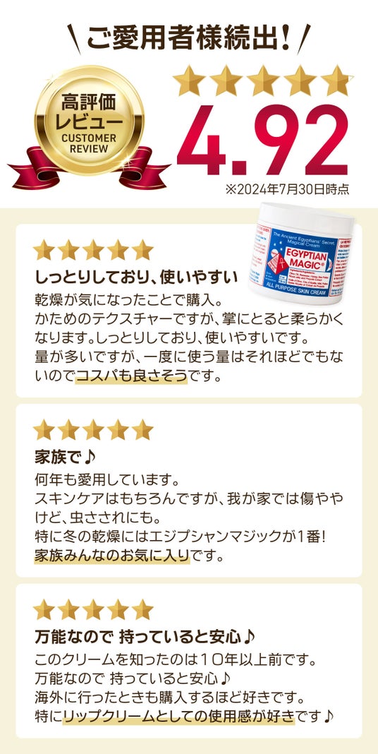 お客様のお声から生まれた、エジプシャンマジッククリームのこんな使い方