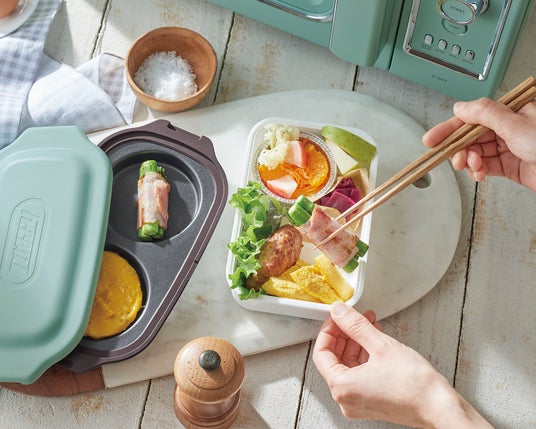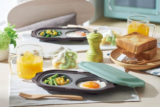 ダブルプレート構造で2品同時に調理が可能。朝食とお弁当づくりの効率が一気にアップします。火を使わずに電子レンジを使用するため、つきっきりになる必要がなく、調理の合間にも出かける準備やほかの家事をすることができ、忙しい朝の時間に大活躍!