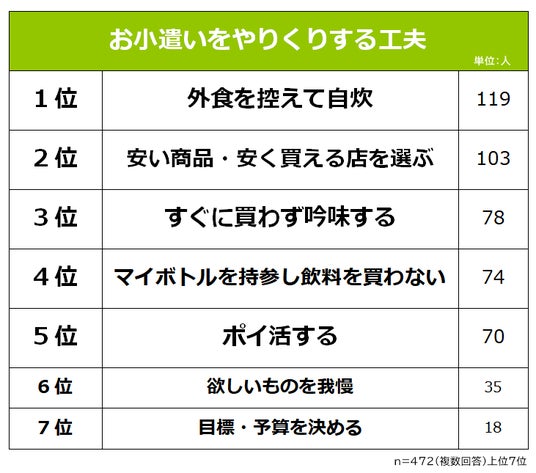 お小遣いをやりくりする工夫1位は「外食を控えて自炊」