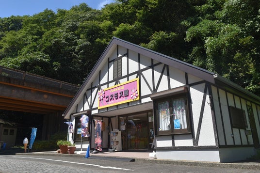 コスモス花畑の横にある売店「コスモス館」では、公園オリジナルグッズや、人気の高い『ゴジラの滑り台』にちなんだゴジラカレーなどを販売。横須賀のお土産としても人気の高い海軍カレー各種や、散策にぴったりのソフトクリームなども取り扱っていますので、ぜひお立ち寄りください。
