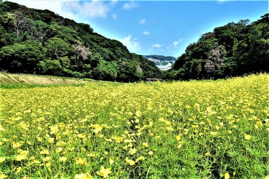 横須賀市くりはま花の国は、豊かな自然に囲まれ、約100万本のポピー・コスモスの花畑をはじめとする四季折々の花が楽しめる公園です。遊具やボルダリング施設、オーシャンビューのBBQ・レストランなどが楽しめます。