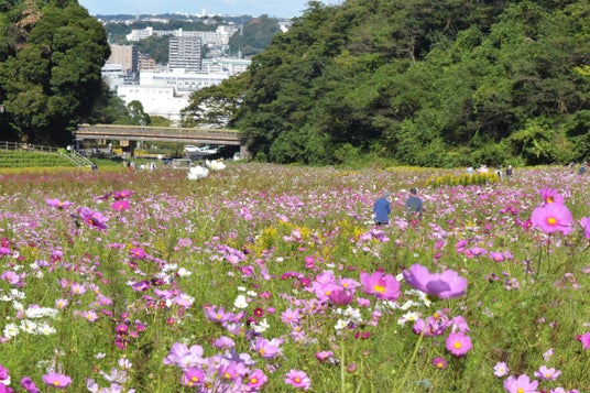 JR「久里浜駅」または京浜急行「京急久里浜駅」より徒歩約15分の、神奈川県横須賀市にある横須賀市くりはま花の国(指定管理者:横須賀花の国・西武パートナーズ、代表企業:西武造園株式会社)では、三浦半島最大級の規模である約1.8haの花畑『コスモス園』にて、約100万本のコスモスが9月から開花シーズンを迎えます。