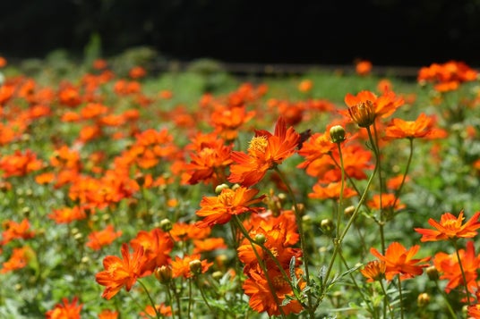今年は酷暑や豪雨の影響を受けていますが、スタッフが日々細やかに管理を行っており、草丈がやや小ぶりながらも可憐な花々をお楽しみいただけます。一足早く8月末から早咲きコスモスの「レモンブライト」や「ロードスカーレット」が開花しています。